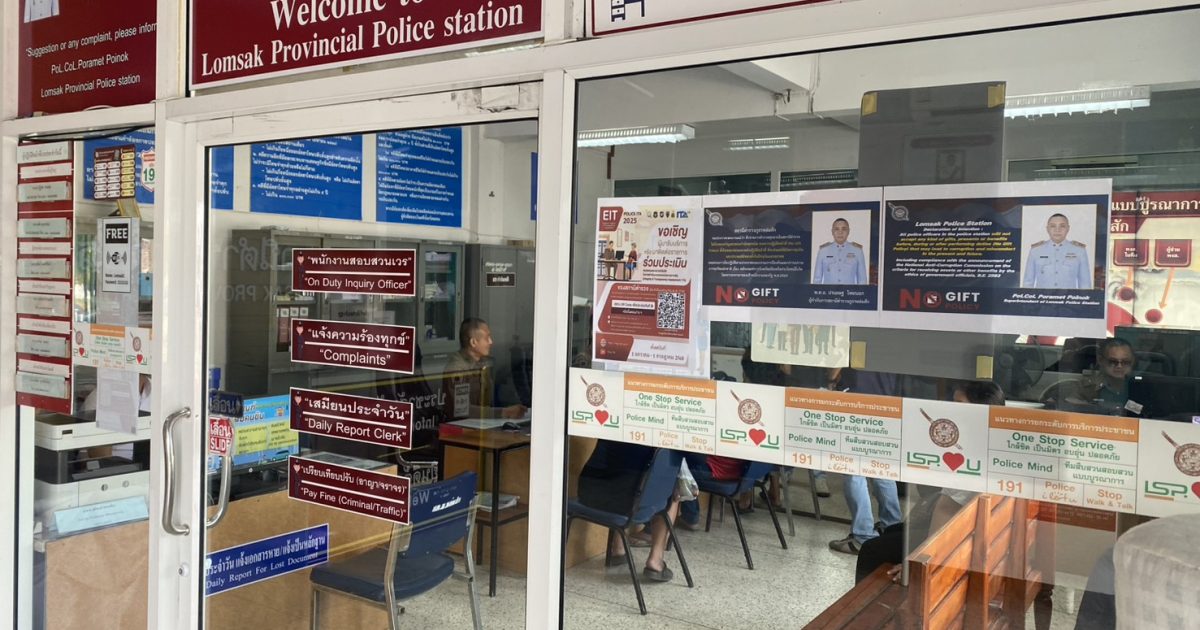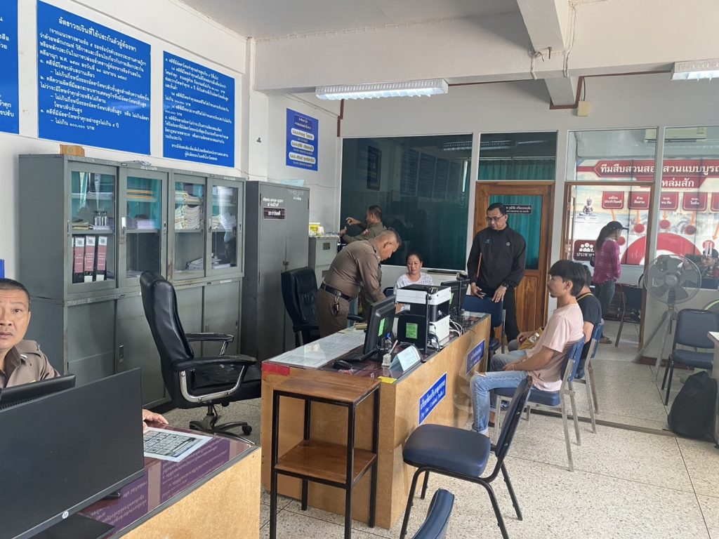 เจ้าหน้าที่ตำรวจที่ปฏิบัติหน้าที่ห้อง One Stop Service ให้บริการประชาชนที่มาติดต่อในเวลาราชการ
