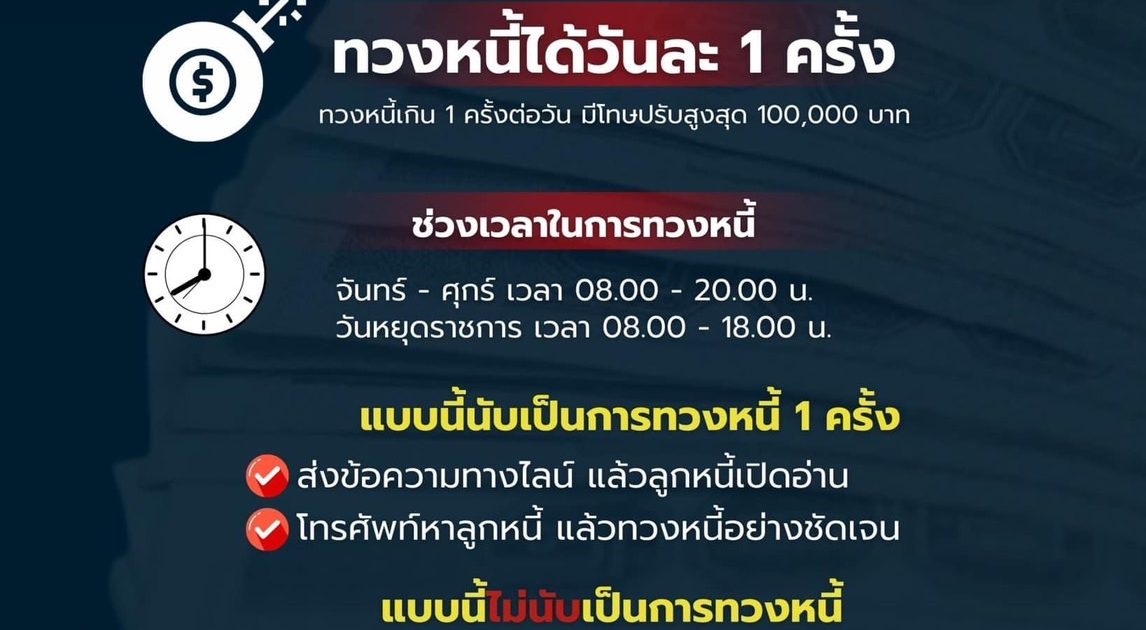 หากทวงหนี้เกิน 1 ครั้งต่อวัน มีโทษปรับสูงสุด 100,000 บาท