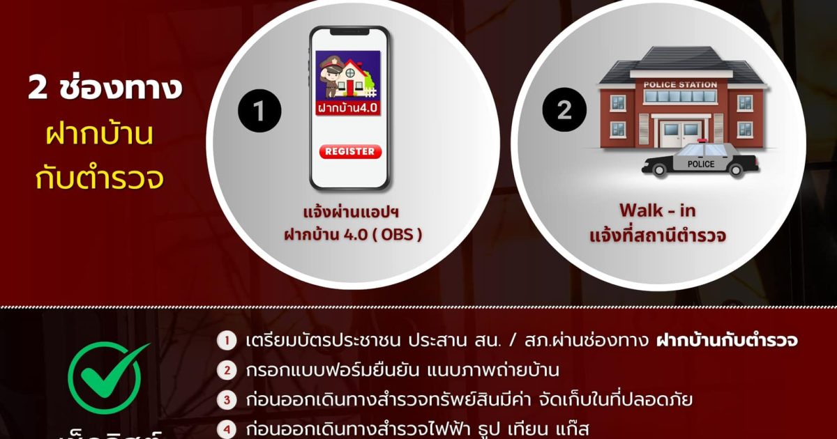 2 ช่องทางฝากบ้านกับตำรวจ