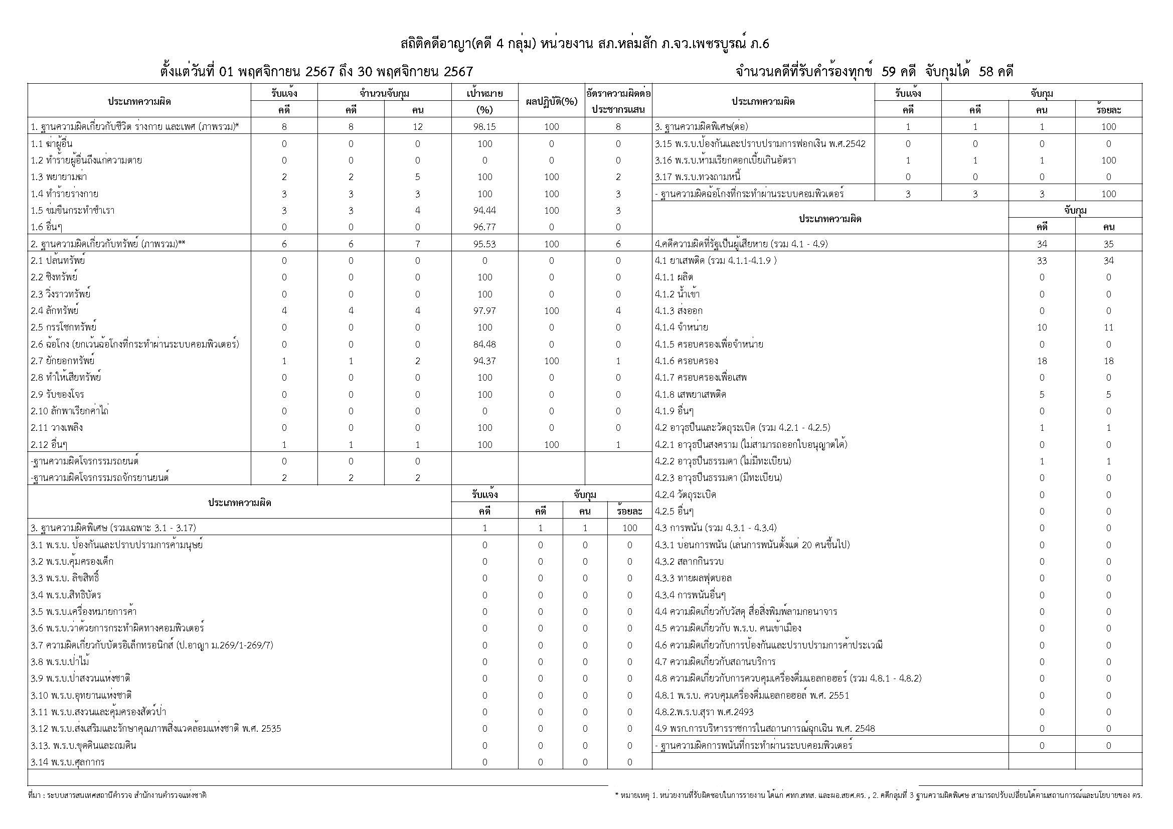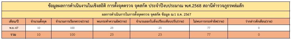 ข้อมูลผลการดำเนินงานในเชิงสถิติ การตั้งจุดตรวจ จุดสกัด เดือน พฤศจิกายน 2567