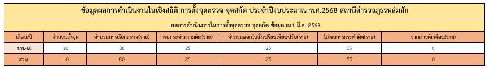 ข้อมูลผลการดำเนินงานในเชิงสถิติ การตั้งจุดตรวจ จุดสกัด เดือน กุมภาพันธ์ 2568