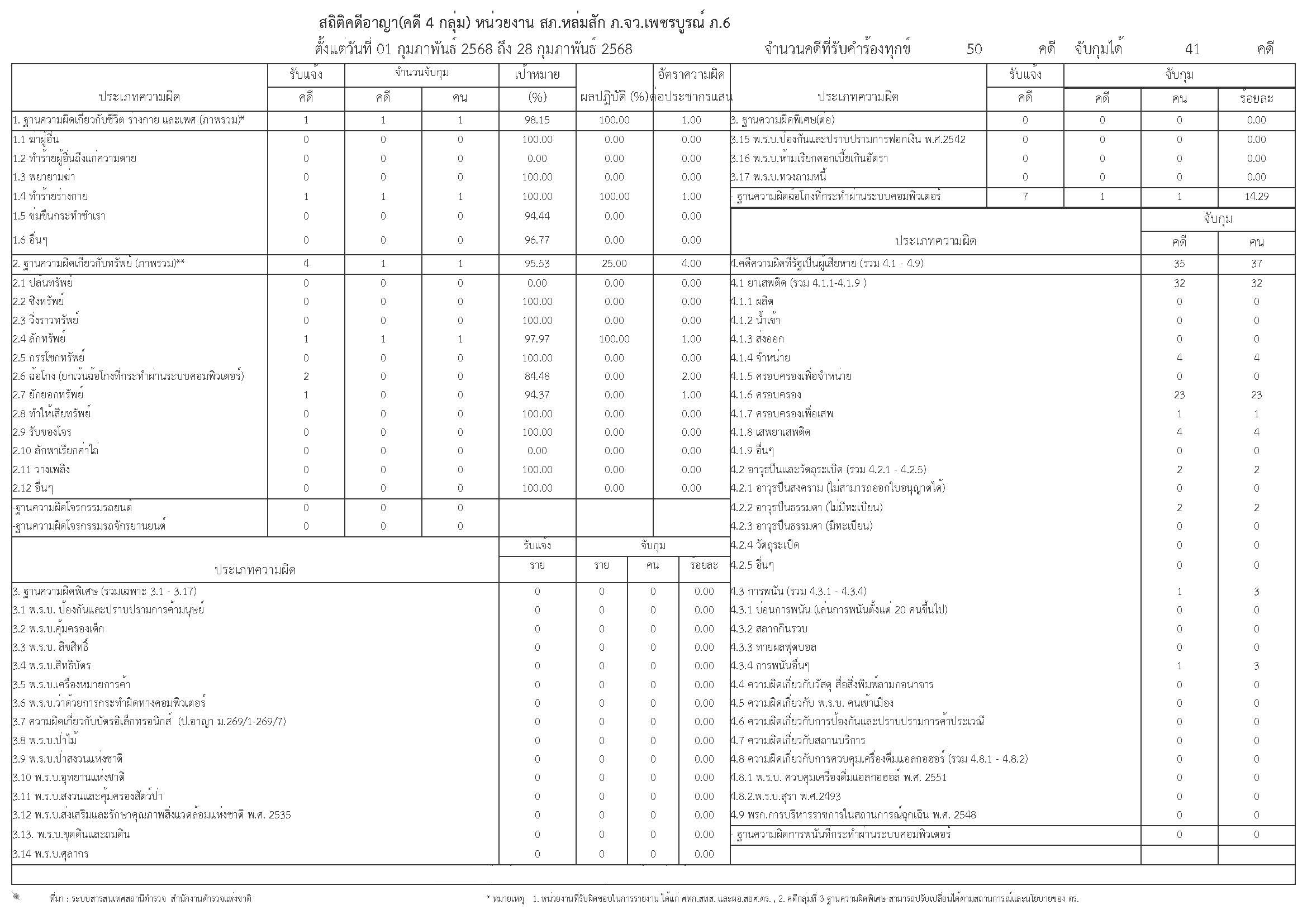 ข้อมูลผลการดำเนินงานในเชิงสถิติการแจ้งความคืบหน้าของการดำเนินคดี เดือน กุมภาพันธ์ 2568