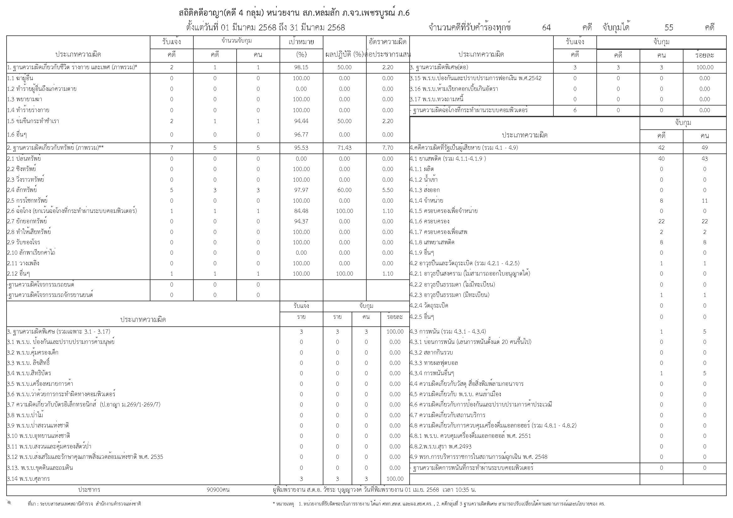 ข้อมูลผลการดำเนินงานในเชิงสถิติการแจ้งความคืบหน้าของการดำเนินคดี เดือน มีนาคม 2568