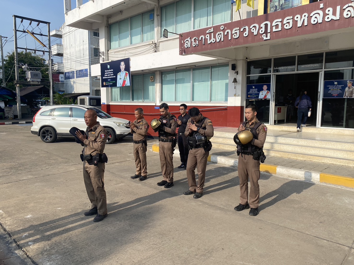 - ตรวจความเรียบร้อยของ ยานพาหนะ อุปกรณ์ เครื่องใช้ การแต่งกาย อาวุธปืนประจำกาย ไฟฉาย เสื้อสะท้อนแสง มีครบทุกนาย