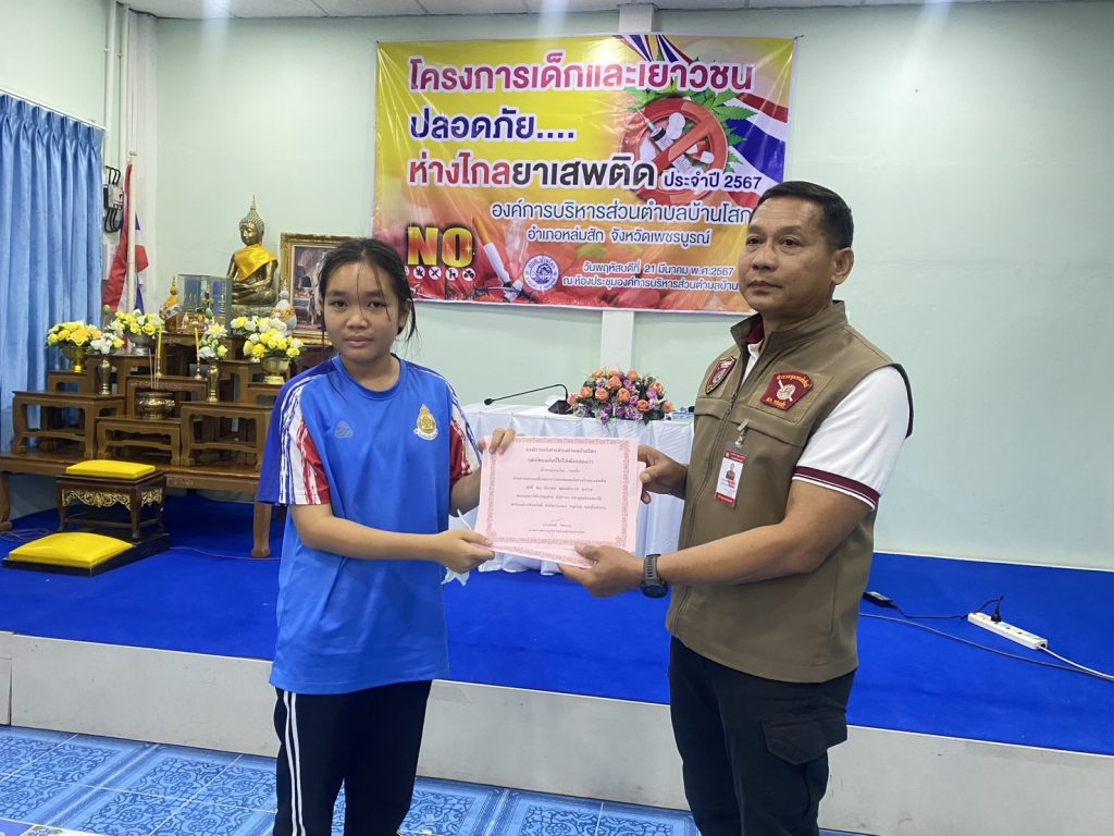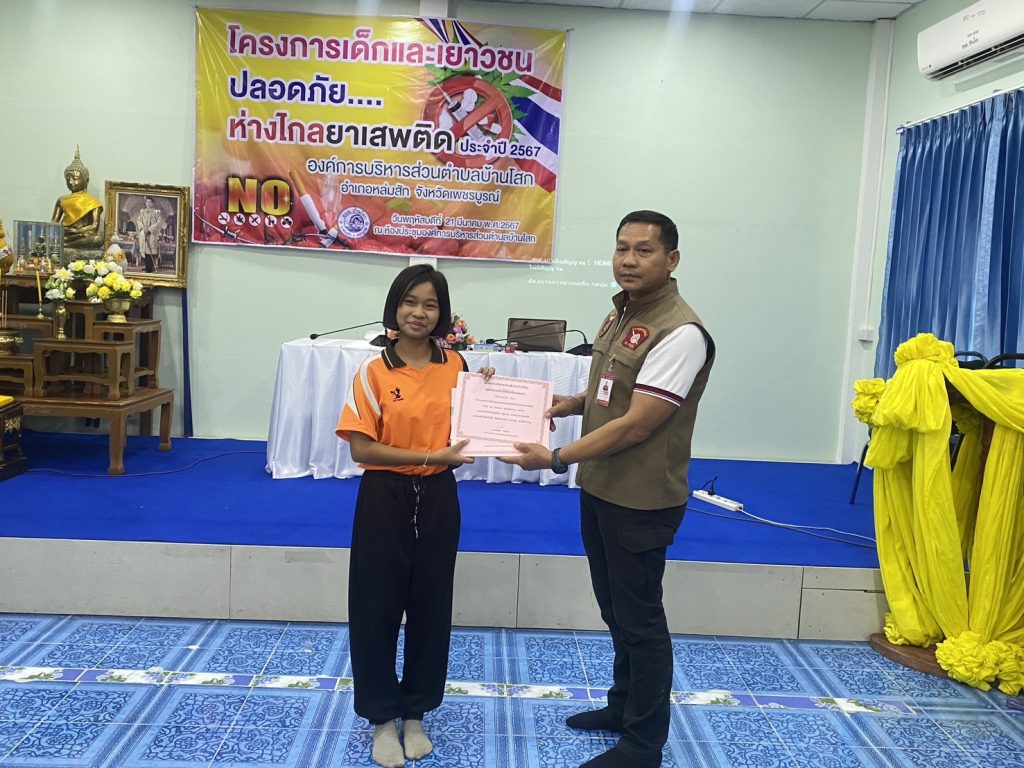 พร้อมด้วยชุดชุมชนสัมพันธ์ สภ.หล่มสักได้มาเป็นวิทยากรให้ความรู้เกี่ยวกับโทษและพิษภัยของยาเสพติดให้กับนักเรียนโรงเรียนบ้านโสก,โรงเรียนบ้านส้มเลาจำนวน 60 คนตามโครงการเด็กและเยาวชนปลอดภัยห่างไกลยาเสพติด ณ หอประชุมองค์การบริหารส่วนตำบลบ้านโสก หมู่ที่5 ตำบลบ้านโสก อำเภอหล่มสัก จังหวัดเพชรบูรณ์