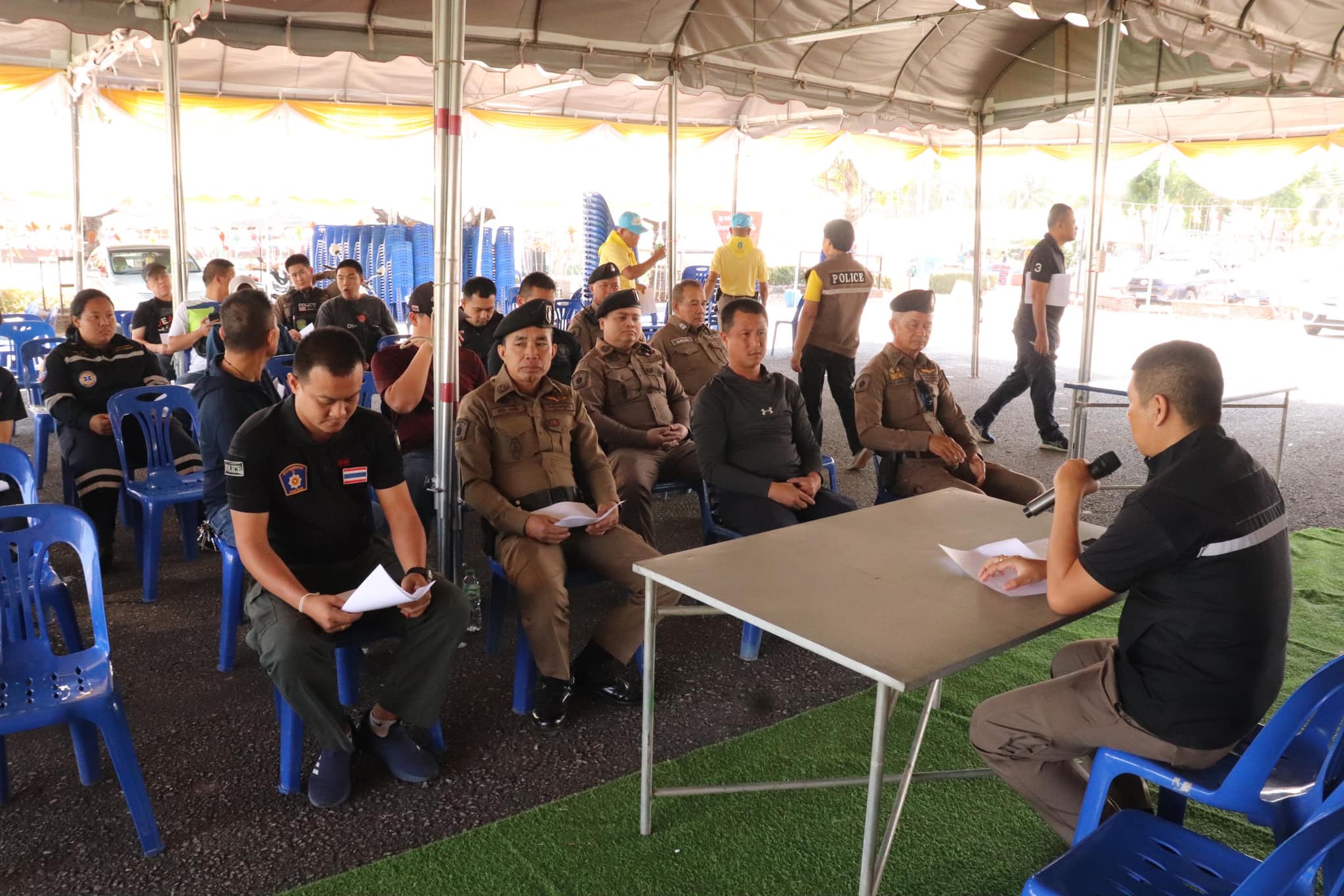 ปฏิบัติซักซ้อมแผนเผชิญเหตุทะเลาะวิวาทในงานเส็งกลอง ล่องโคมไฟ ไหว้พ่อขุนผาเมือง ประจำปี 2568