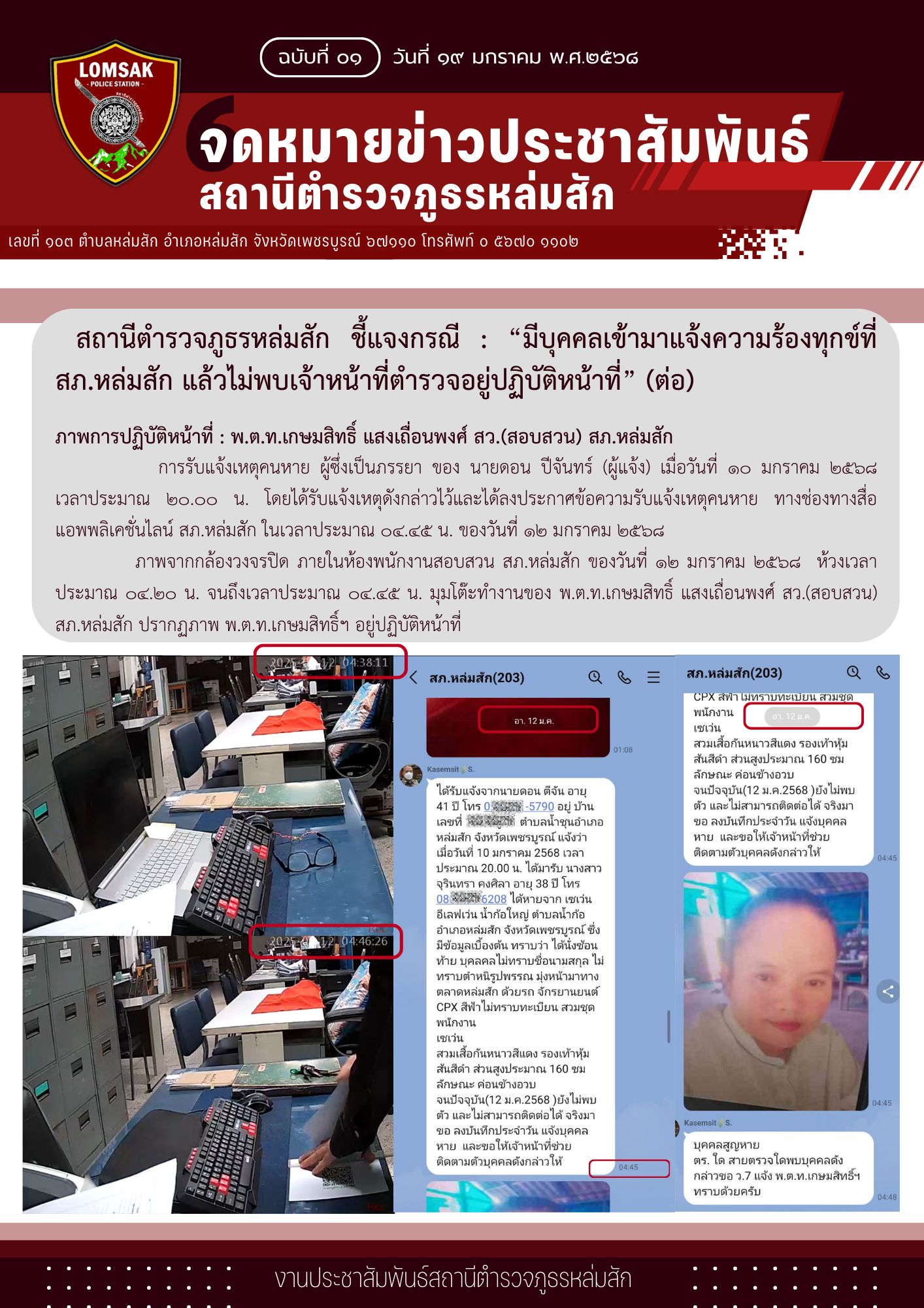 ประชาสัมพันธ์จากสถานีตำรวจภูธรหล่มสัก ชี้แจงกรณีมีผู้มาเข้ารับการแจ้งความร้องทุกข์แล้วไม่พบเจ้าหน้าท